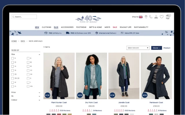 Covid has accelerated the digital transformation at Seasalt. The brand has seen rapid digital adoption from existing customers, and has acquired new digital customers. Seasalt recently replatformed to Magento 2 on all three websites – UK, Ireland and Rest of World and launched with Athos Comerce’s Discovery Suite including Smart Search and Smart Category Merchandising in mid-July 2021.