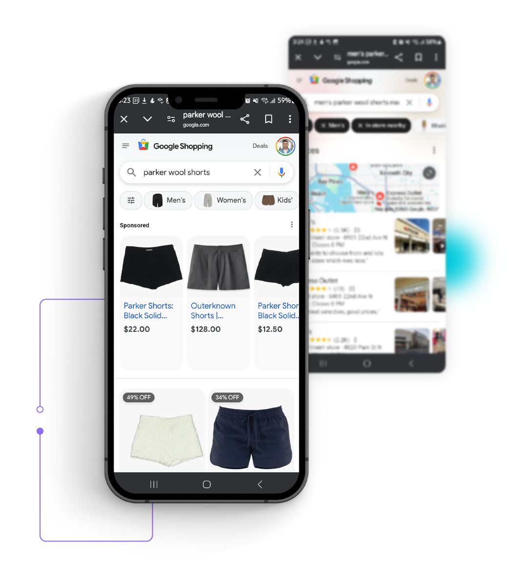 Google Shopping is a feed-based ad platform that allows ecommerce businesses to display product listings directly in Google search results. These highly visual listings include product images, prices, and details—helping shoppers compare products before clicking through to your site.